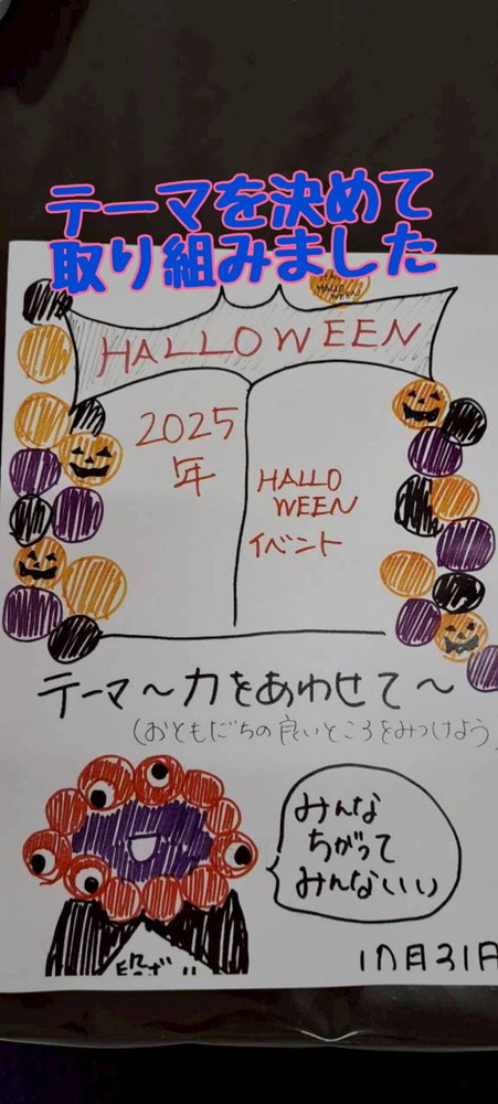最後にはみんなで写真を撮り、ハロウインの思いでを共有しました。